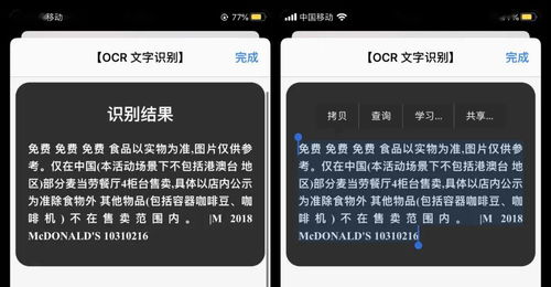 现在,很多OCR文字识别软件都提供了快捷指令功能,让你在手机上轻松实现文字识别。比如,在微信聊天界面,你可以长按图片,选择“提取文字”功能;在相册中,你可以选中图片,点击“文字识别”按钮。这些快捷指令让操作变得简单快捷。