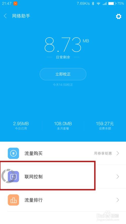 3. 移动网络:进入移动网络设置,找到“数据使用”或“流量管理”选项。